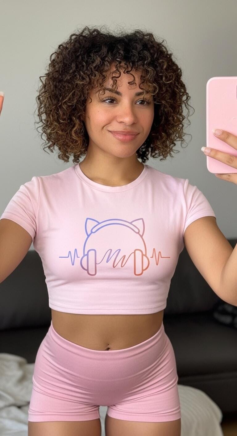 Soft, cropped, and street-ready. Features a thin line art silhouette of cat ear headphones with MW initials and subtle frequency wave.