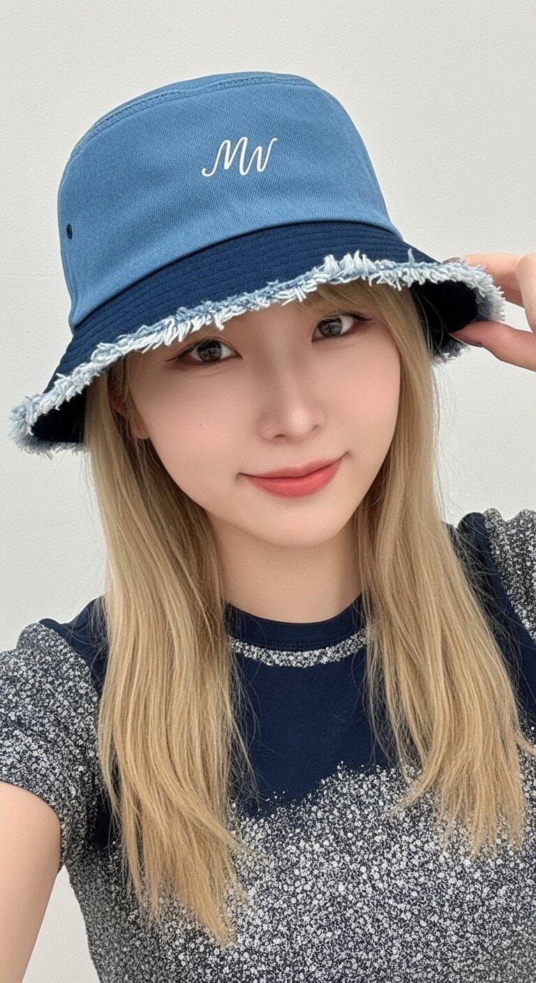Vintage feel. Modern edge. This distressed denim bucket hat features subtle MW embroidery for a streetwear-ready finish.
