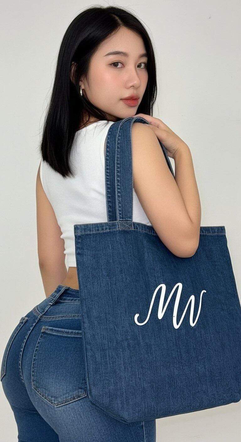 Sustainable, simple, essential. This organic denim tote features a minimalist MW logo for everyday streetwear utility.